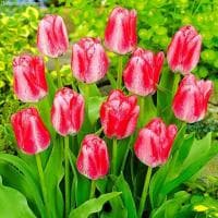 Размер луковицы 11-12 см Тюльпан Дениc относится к сортам группы Триумф. Цветет тюльпан в апреле-мае, образуя шикарный яркий цветок с высоким бокалом, до 10 см, лепестки которого окрашены в белоснежный цвет, а по краям в розовые частые крапинки-штрихи, которых больше или меньше в зависимости от освещения. Красивый розово-белый цветок тюльпана возвышается на средней прочности ноге, высотой до 40 см.Обладает тюльпан Дениc средней скоростью роста, подходит как для озеленения и украшения клумб, так и для букетов, отлично растет на хорошо освещенном месте и в полутени.