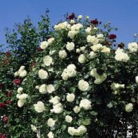 Эта красивая плетистая роза популярна в западной Европе и Скандинавии. У Schneewalzer крупные цветки, по форме напоминающие чайно-гибридные розы. Едва раскрывшись, они очень бледно-лимонные, с жемчужно-розовым центром, позднее становятся чисто белыми. Появляются обычно по одному на длинных стеблях, иногда по 2-3. Побеги с цветами не жесткие, а изящно изгибаются в стороны, и цветки поникают, так что снизу их хорошо видно. Листва темная, устойчивая к заболеваниям, куст сильнорослый, ветвистый. Цветки густомахровые, появляются практически без перерыва все лето. Большинство источников описывают Schneewalzer как чисто-белую. На самом деле сорт очень бледно-лимонного цвета, с жемчужно-розовой серединкой. Цветки очень крупные, 13-15 см, по форме похожи на чайногибридные розы, с легким ароматом.